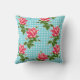Pretty blue pillow with white dots and bright lovely pink roses.
