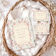 An elegant vintage baby shower design featuring hand-painted garden florals, soft sage greens, and a classic scalloped frame. The detailed botanical border adds an heirloom feel, while the neutral tones keep the look refined and timeless. Perfect for celebrating a mother-to-be who loves romantic, traditional, and feminine themes. Fully customizable to suit any event details.