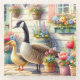Cottage Garden Geese Spring Illustration Glass Coaster