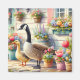A tender cottagecore scene unfolds on a sunlit porch where graceful geese wander among blooming tulips, overflowing window boxes, and painted flowerpots. Soft pastels mingle with gentle greens and warm creams, creating a peaceful, storybook atmosphere rooted in folk charm and shabby chic warmth. The composition feels welcoming and nostalgic, blending whimsical countryside life with floral abundance and quiet spring joy. AI generated artwork.