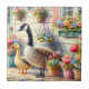 A tender cottagecore scene unfolds on a sunlit porch where graceful geese wander among blooming tulips, overflowing window boxes, and painted flowerpots. Soft pastels mingle with gentle greens and warm creams, creating a peaceful, storybook atmosphere rooted in folk charm and shabby chic warmth. The composition feels welcoming and nostalgic, blending whimsical countryside life with floral abundance and quiet spring joy. AI generated artwork.