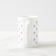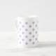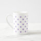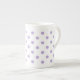 Cute polka dots in sweet Cottage Lavender on a solid white teacup.
