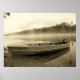 Wood fishing boat on the bank of the Spanish River in sepia.