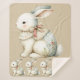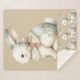 A sweet white bunny sits gracefully in soft pastel tones, dressed in a vintage-style patchwork apron and scalloped collar that echo gentle cottagecore charm. Delicate florals, gingham touches, and warm blush accents create a dreamy, nostalgic mood perfect for cozy nursery atmospheres and storybook-style scenes. The artwork blends whimsical folk details and soft watercolor shading for a tender, heartwarming aesthetic full of calm, handmade warmth. AI generated artwork.