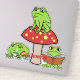 Cottagecore frogs sitting on and under an amanita mushroom, drinking tea, reading a book and sitting on top , personalise by changing to your name on any background colour