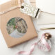 Round photo sticker of the old honey coloured cottages in Cotswold stone with slates on the roof in the small, quaint, fairy tale village of Castle Combe in the Cotswolds, England, UK.