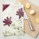 Watercolor floral cotton tea towel. Personalise for a family gift. Burgundy and greens