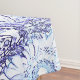 A vibrant blue colour floral fabric print pattern table cloth design. A tablecloth is a piece of fabric that is draped over a table, either for decoration or to protect the table surface.
