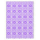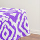 A classic white background and purple fabric geometric pattern table cloth design. A tablecloth is a piece of fabric that is draped over a table, either for decoration or to protect the table surface.