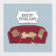 Couch Greyhound - Cute lazy Greyhound sleeping, relaxing, or lounging on a sofa with pillows and dog bone dog toy. Do not disturb. Copyright © Angi Laframboise. Funny dog humour dog breed cartoon gifts for dog lovers.