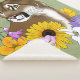 A cougar with wild flower. The puma and flowers are drawn in a tattoo style all in a backdrop of olive green