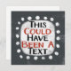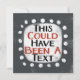 A cute typographic design that says "This Could Have Been A Text". It's black and red text on a white rectangle with funky, playful white dots surrounding it, all on a grey background.