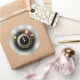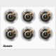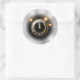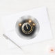 Round sticker with an image of a beautiful black and gold clock counting down to the new year and three gold glowing orbs on gleaming silver. See matching confetti and wrapping paper. See the entire New Year Sticker collection under the CARDS & STICKERS category in the HOLIDAYS section.