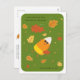 Send a sweet fall or Thanksgiving greeting with this playful fall postcard featuring a candy corn character thoughtfully admiring falling leaves. A lighthearted way to let friends and loved ones know they’re one of your blessings this season.