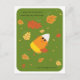 Colours: grass green background, yellow, orange, and white candy corn, with warm golden, orange, and brown autumn leaves.