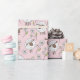 Counting sheep on cotton candy pink wrapping paper