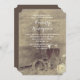 Rustic country bridal shower invitation features horseshoes couple, old burlap, flowers and champagne.