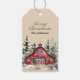 A rustic watercolor barn and evergreen trees make these country Christmas gift tags perfect for farmhouse lovers and country enthusiasts. The back includes a classic red and green plaid pattern.