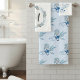 Transform your bathroom into a haven of tranquillity with the soothing blue hues and delicate watercolor rose flowers that adorn each towel. The hand towel also features a unique wreath design, providing the perfect canvas for your own monogram, adding a touch of individuality to your bath linens.