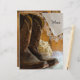 Customise the rustic chic Country Boots and Lace Western Wedding Menu with the details of the meal that you will serve at your casual yet classy barn party bridal shower luncheon, farm style marriage reception dinner or post wedding brunch by adding the salad or first course, entree or second course and dessert or third course. Personalise it with the names of the bride and groom, venue location and event date. This charming custom ranch theme wedding menu features a quaint photograph of a pair of leather western cowboy boots, dried hydrangea flower blossom, white bridal veil and vintage white lace trimmed linen handkerchief with a brown weathered barn wood background.