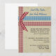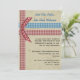 Sweet country style wedding invitation, done in a tan background, with red and blue gingham ribbons. Customise the text in font style, colours, and size.