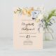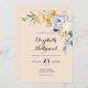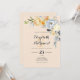 A country chic botanical white, orange, white, and blue hand drew watercolor floral wedding invitations with trendy orange ampersand typography customized initials.