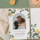 Invite family and friends to celebrate your wedding with this country chic summer lemon themed Save the Date Card. Design features a picture of the happy couple framed in an arch, a textured background with beautiful citrus lemons, white blossom flowers and hand painted green foliage.