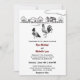 This all in one wedding invitation features two chickens a rooster and hen in love. They are set against a charming line drawing country farm. Add all of your details to the back of this invitation.