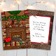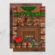 Personalised Christmas cards. Edit the message on the back of the card. Hand drawn country and westerns themed holiday card with cartoon cowboy boots hanging on the fireplace mantel instead of stockings.