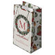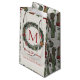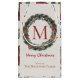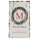 This festive country monogrammed Christmas gift bag features hand-drawn western illustrations of a pine wreath with cowboy boots, cowboy hat, holly berries, cacti and vintage xmas ornaments in black ink. Printed on front and back. The background features a fun country pattern of the same elements among stars and the hand-written words, "Howdy Christmas".