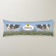 Elegant modern black and white cows on sky blue Body Pillow. Text can be personalised.