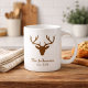 A lovely country decor for your kitchen, this coffee mug features deer head silhouette in brown. Underneath is a template for your family name and another for the date it was established.