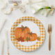 This Fall Pumpkins Plate features a colored pencil drawing print of Pumpkins and Fall leaves.