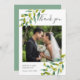 Country garden wedding photo thank you card featuring delicate watercolour green foliage, framing your wedding photo with your thank you details in elegant slate grey lettering.