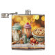 A collection of delectable treats including cookies, a milkshake, and a pie is arranged artfully on a decorated tablecloth, surrounded by apples and autumn leaves. The warm, glowing bokeh lights in the background create a cosy, festive atmosphere. Digital Art