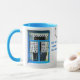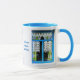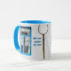 The white wall of the country peasant house with two blue windows. Oven fork by the wall between the windows. Funny customisable coffee mug. You can change or delete two template texts.