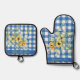 Country kitchen floral monogram name plaid blue oven mitt & pot holder set