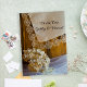 Send a warm message of appreciation for gifts received after a rural farm style or ranch theme engagement barn party, bridal shower or marriage with the elegant Country Lace and Flowers Barn Wedding Flat Thank You Note. These rustic chic custom nuptial thank you notes feature a quaint floral photograph of brown rustic barn wood, a vintage white lace trimmed linen handkerchief, dried wildflowers, a pearl necklace and a bridal veil.