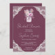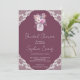 The invitation features a rich burgundy colour, exuding warmth and sophistication. Framing each corner are delicate white lace borders, adding a touch of vintage allure and enhancing the invitation's romantic appeal. The combination of burgundy and lace creates a visually striking contrast that is both captivating and timeless.