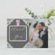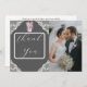 The front of the card proudly displays a captivating photo of the couple, beautifully capturing a cherished moment from your special day. The photo takes centre stage, surrounded by a beautiful white script font, adding a touch of sophistication and grace to the design. This harmonious combination of a heartfelt image and elegant typography creates a truly personalised and heartfelt thank you message.