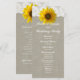 This lovely vintage rustic style wedding program has an easy template that allows you to fill in the wedding party on one side, and the order of ceremony on the other. Vintage style white lace on linen, with a cheerful yellow sunflower. Click the customise button if you need to change anything. NOTE THAT ALL ELEMENTS ARE PRINTED EFFECTS--there is no actual linen.