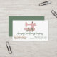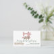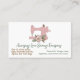 Custom sewing business card done in white, with a home spun country look, and graphics of a coral pink and white polka dot sewing machine, decorated with pretty flowers. Personalise all the text fields for your business needs.