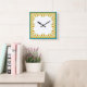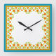 A pretty Square Wall Clock, with a border of Pot Marigold flowers on a white background. Part of the Posh & Painterly 'Marigold Medley' collection.