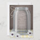 Rustic and beautiful Southern country Anniversary Party invitations (personalised for any year) featuring an illustration of a mason jar with twine tied around the neck of it, white and purple daisies laying at the foot of the jar, a white & yellow gingham table top, over a vintage brown background. Your celebration details are contained within the glass jar, to where if your text extends into the shading of the jar, the text will be shaded too (recommended to keep lines short).