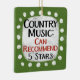 A funny typographic design that says "Country Music: Can Recommend, 5 Stars". It's black and red text on a white rectangle with funky, playful white dots surrounding it, all on a green background.