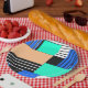Country. ethnic , national , ethnic , geo , geometric , polygon , turquoise , beige , blue , black , white , plaid , squares , geometric shapes , abstract