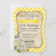 Country picnic yellow gingham check with daisies birthday party invitation card design.