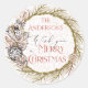 This holiday sicker features a holiday pine wreath accented with candy canes, pine cones, Christmas ornaments, holiday gifts, and the phrase Merry Christmas. These seals make a great accent to holiday gifts and Christmas cards and invitations. Place them on your holiday envelopes to add a finishing touch. Personalise with your family name to create a one of a kind sticker your friends and family are sure to love.