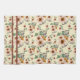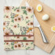 A beautiful summer and fall country floral watercolor decorates this kitchen towel. Flowers are primarily pale pink with a brown center and there is an orange rust color flower and dark forest green botanicals as well. There are two brown stripes accenting the bottom of the towel. There is also a personalized version in our shop.