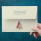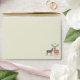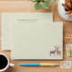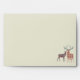 This country Christmas envelope matches the collection on this site. It has a very pale yellowish green background with burgundy on the inside. On the outside front side, there are two standing deer, a buck and a doe in faded plaid colours of burgundy, cream, and a blue-green colour for the antlers. On the back of the envelope, your name and address appear on the back flap and a grouping of three Christmas trees appear on the bottom back. The trees are in burgundy and tan polka dots, tan with ivory and burgundy snowflakes, and a smaller tree in green and ivory plaid. There are two gold stars on the larger two trees. PLEASE NOTE that these printed envelopes take several weeks to print as they are hand glued.